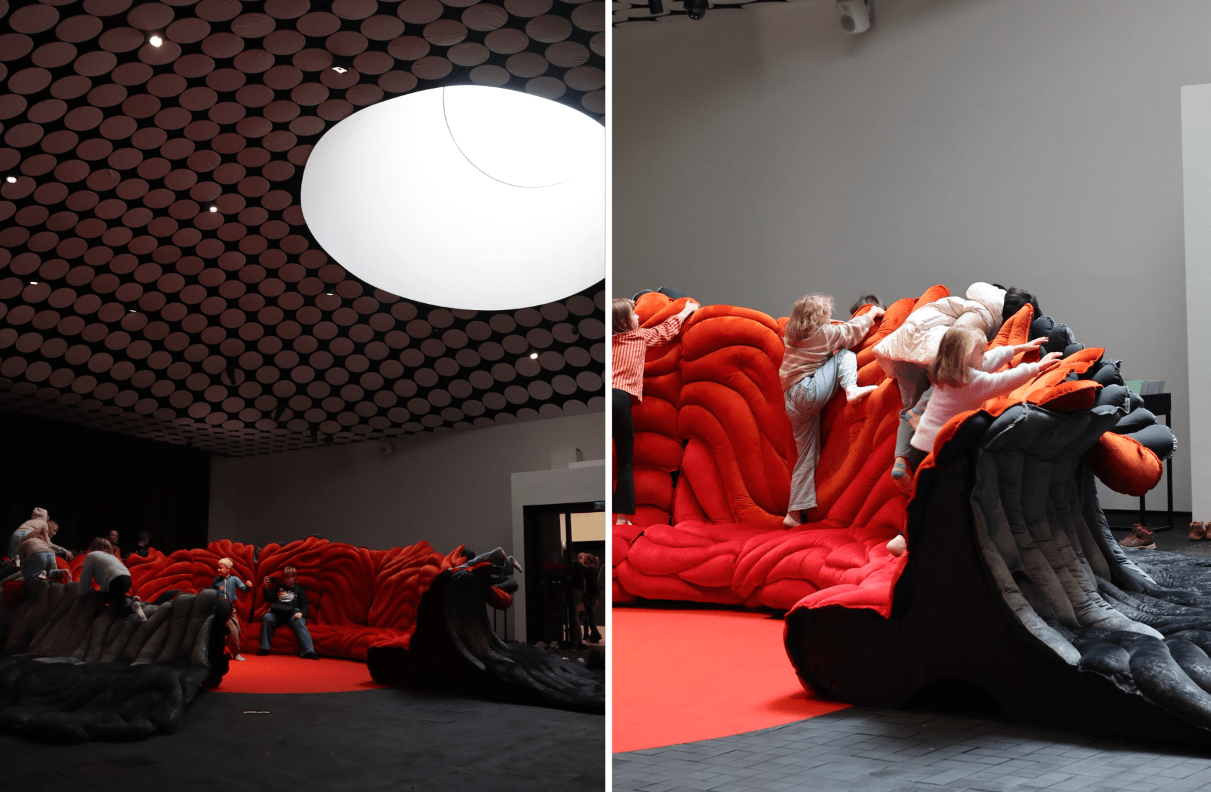 이 점을 핀란드 아모스 렉스Amos Rex의 스튜디오는 아주 흥미롭게 구현했다. 아이들에게 설명할 필요가 없다. 마그마처럼 보이는 이 조형물은 굳이 안내하지 않아도 아이들이 마음껏 넘고 뛰고 다닌다. 조형 안에서 자세를 편안하게 취할 수 있다면 그것 자체가 이미 환대를 위한 요소인 것이다.